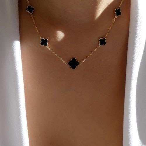 Adjustable Stainless Steel Multi Black Clover Pendant Korean Necklace