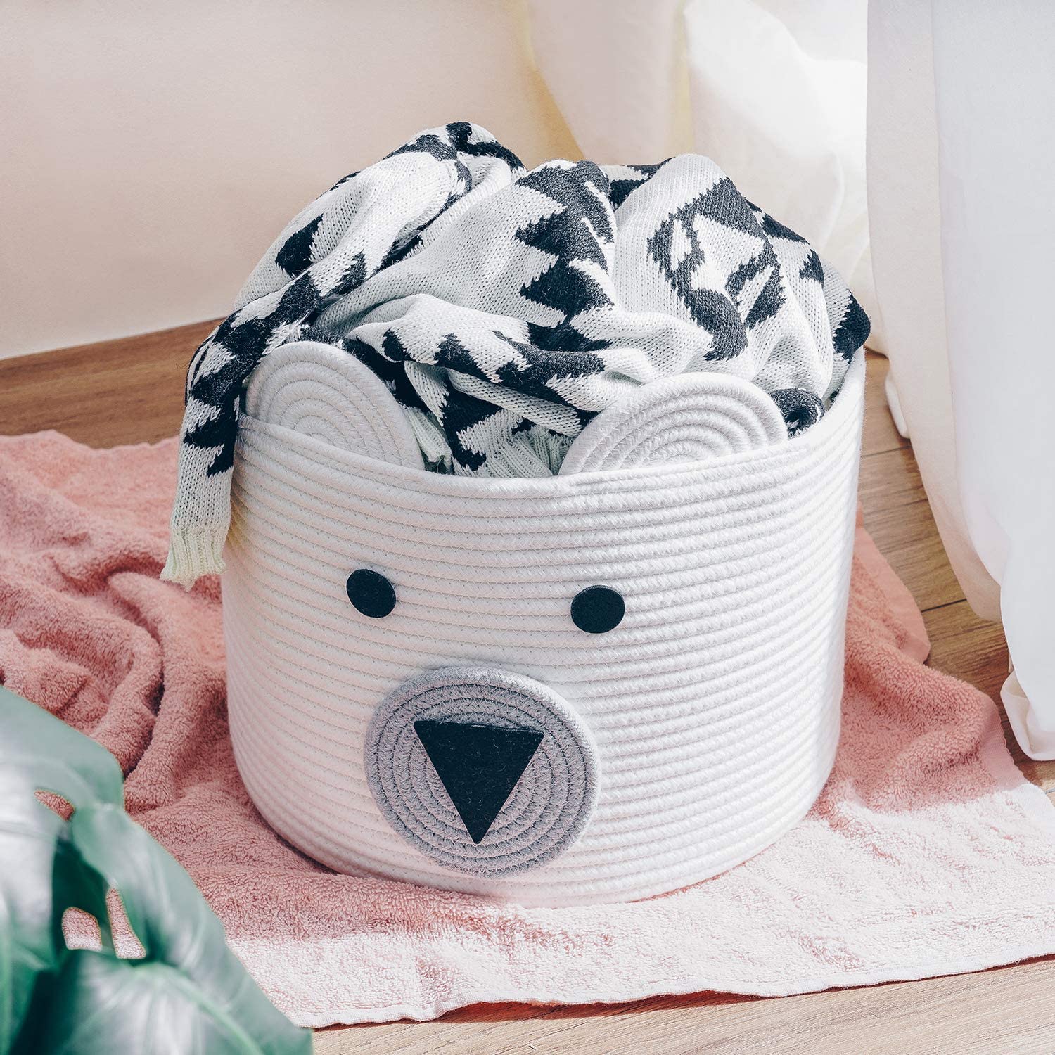 - Unique Animal Design: Made from the soft coiled rope, this animal storage bin with a playful bear face adds sweet flair to their space while keeping the room neat and tidy