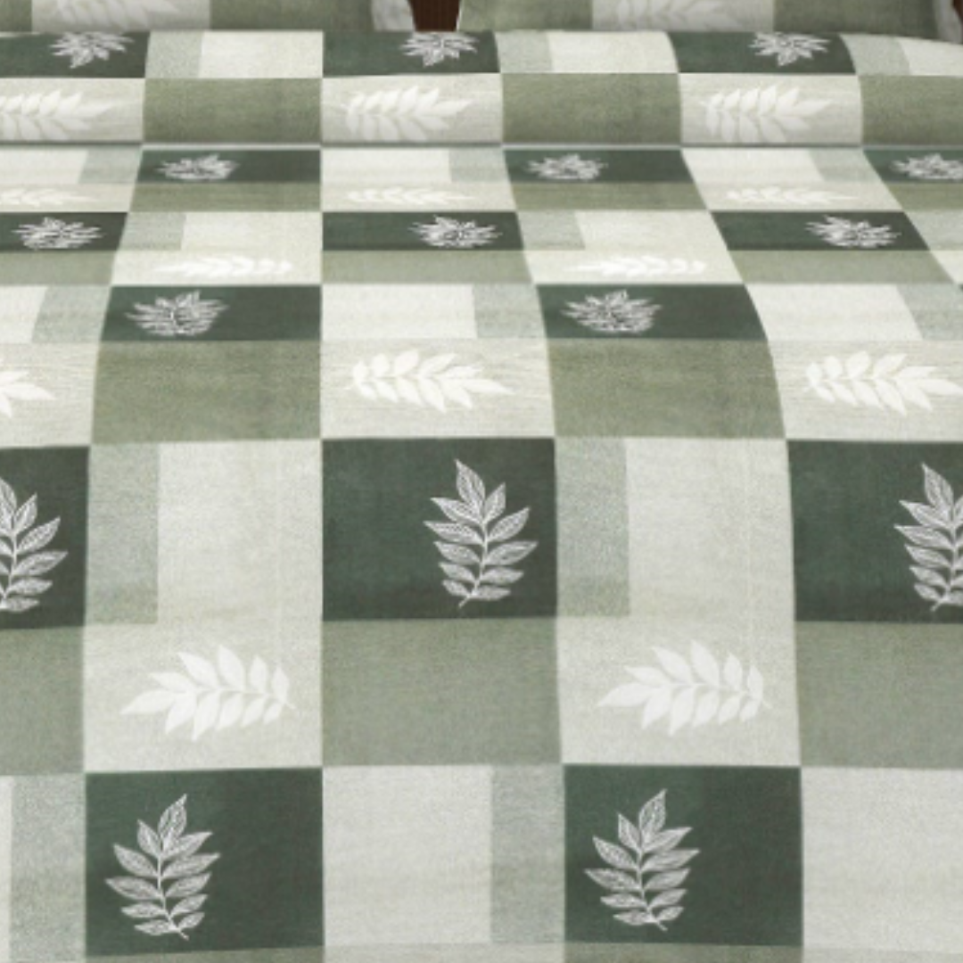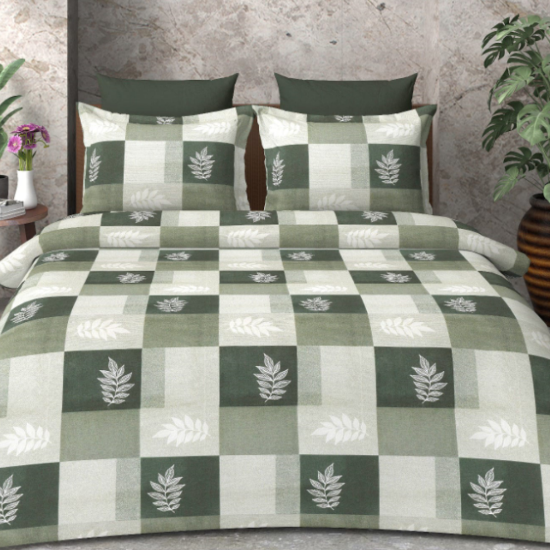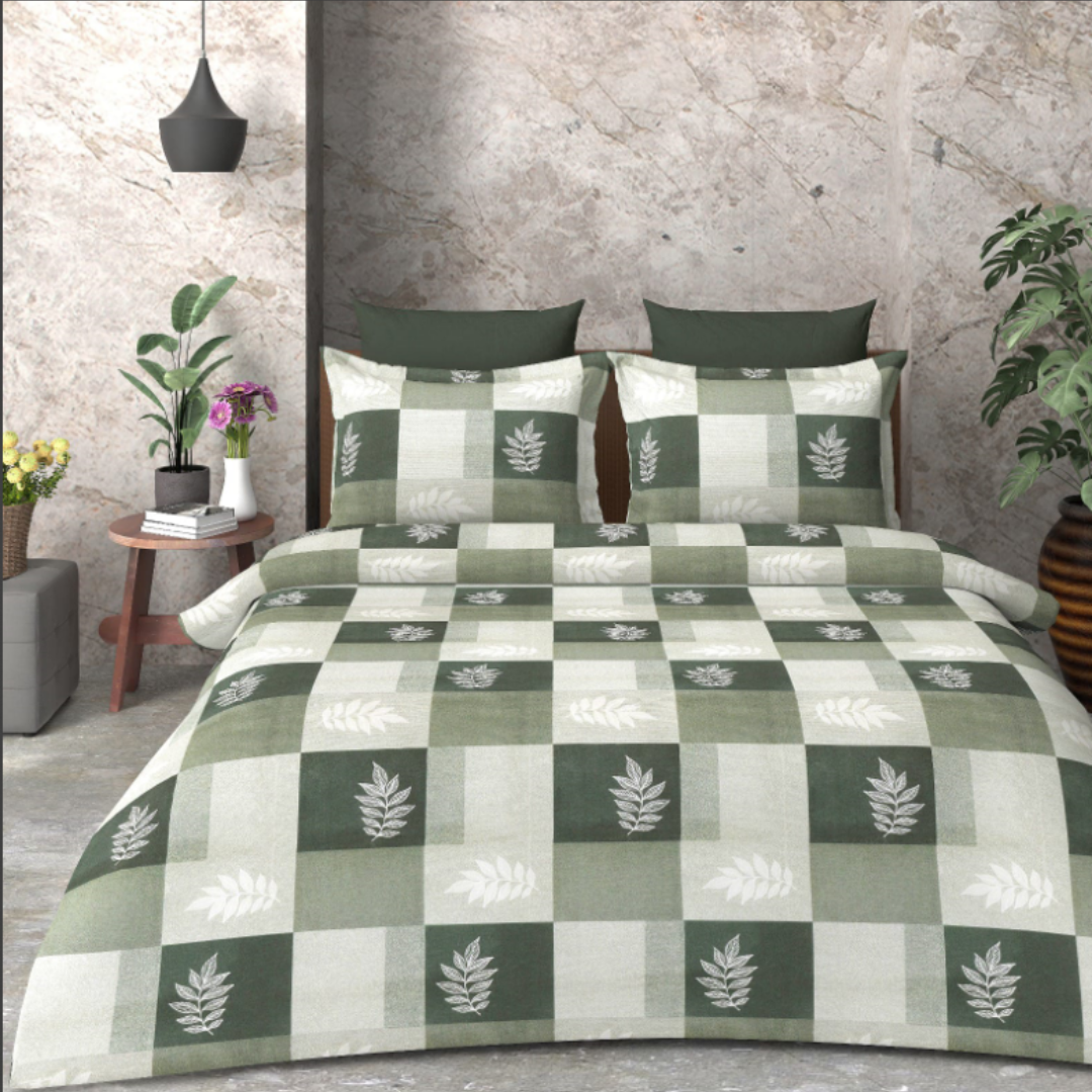 Beautiful Olive Green leaf pattern cotton double bed Bedsheet with 2 pillow covers
