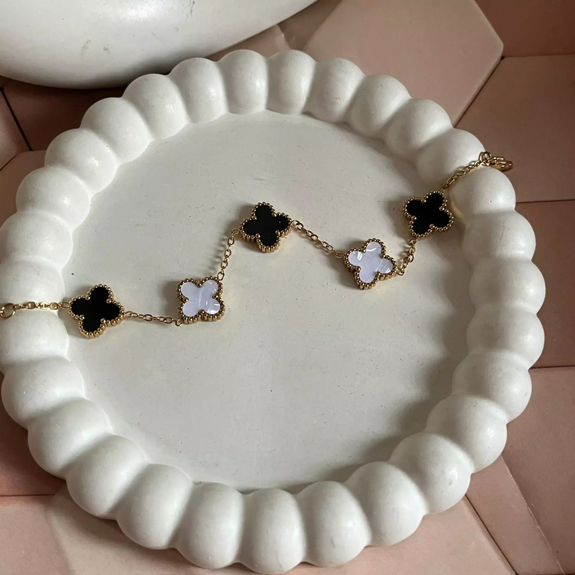 Add a touch of charm and timeless style to your wrist with the Black & White Stainless Steel Clover Bracelet, a perfect blend of elegance and symbolism.