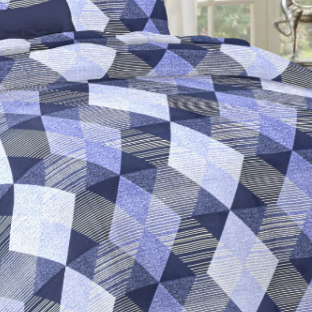 Blue & white Geometric pattern cotton Double Bed Bedsheet with 2 Pillow covers