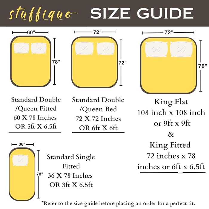 Bedsheet size: 2.54 m X 2.74 m (Length x Width)