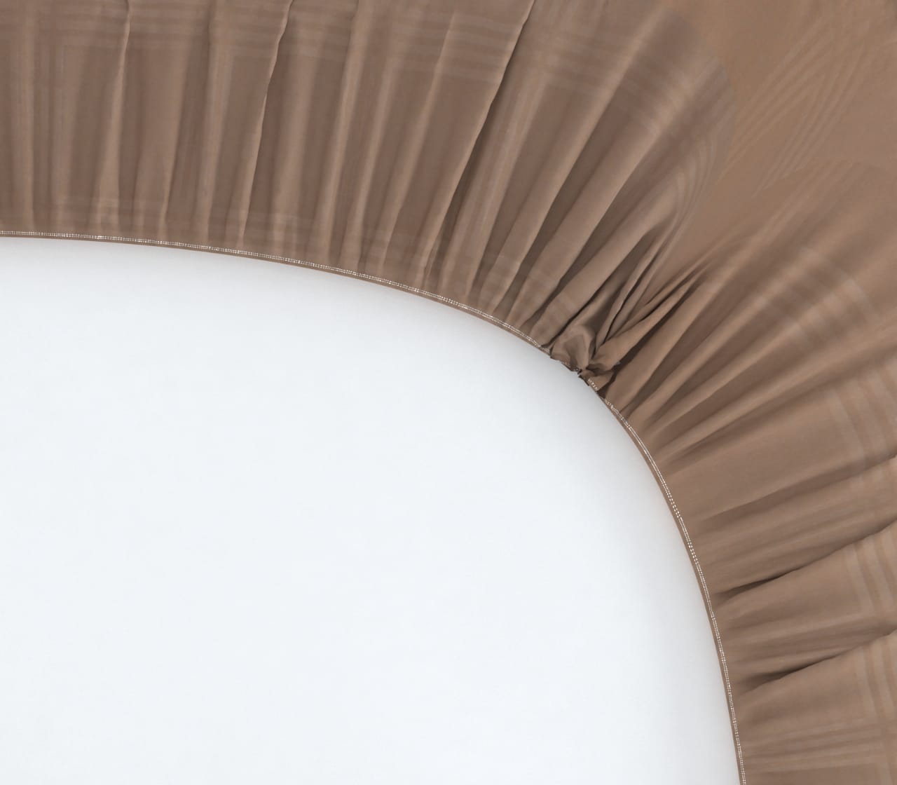 Dark brown Elastic Fitted Glace Cotton Plain Stripe Double Bedsheet with 2 Pillow Cover
