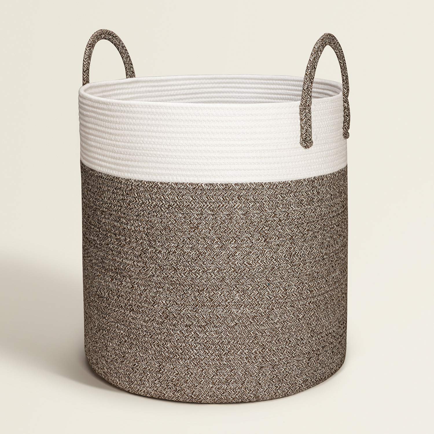 Large Cotton Rope Basket, Decorative Woven Basket for Laundry, Brown