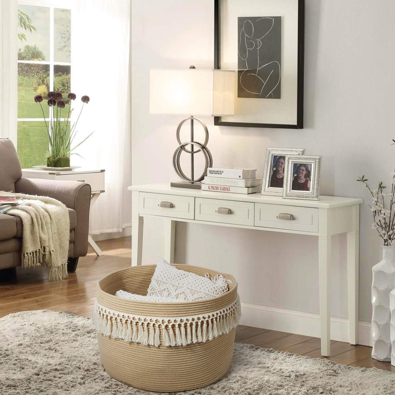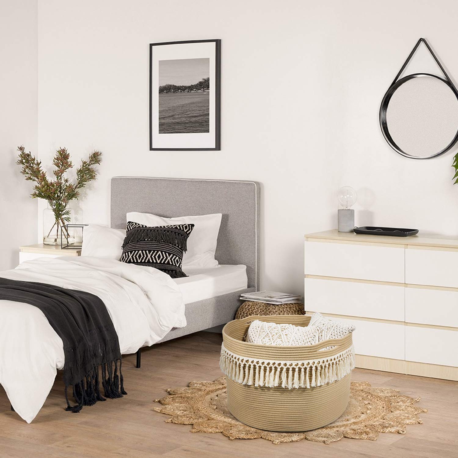 Large Woven Basket Tassel Cotton Rope Storage Basket, 22” x 22” x 14”