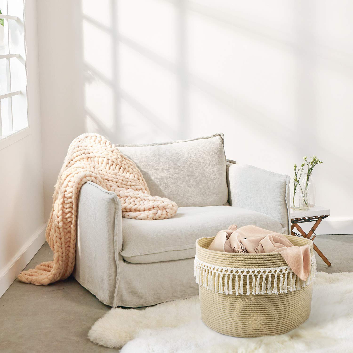 - Unique Design: Basket with fringe design, especially suitable for bohemian and farmhouse decoration, it is also a nice home décor for bedroom, living room, and nursery