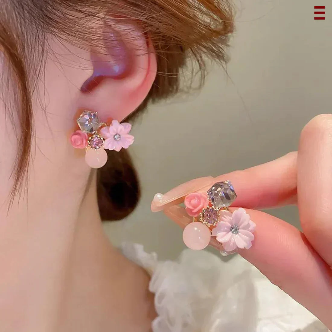 ✨ Sparkling Elegance: Elevate your style with these crystal-studded flower studs that add a touch of glamour to any outfit!