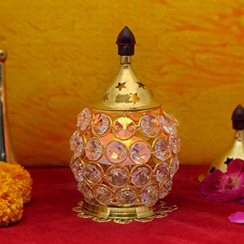 Item Name: Pure Brass Crystal Glass Diya.