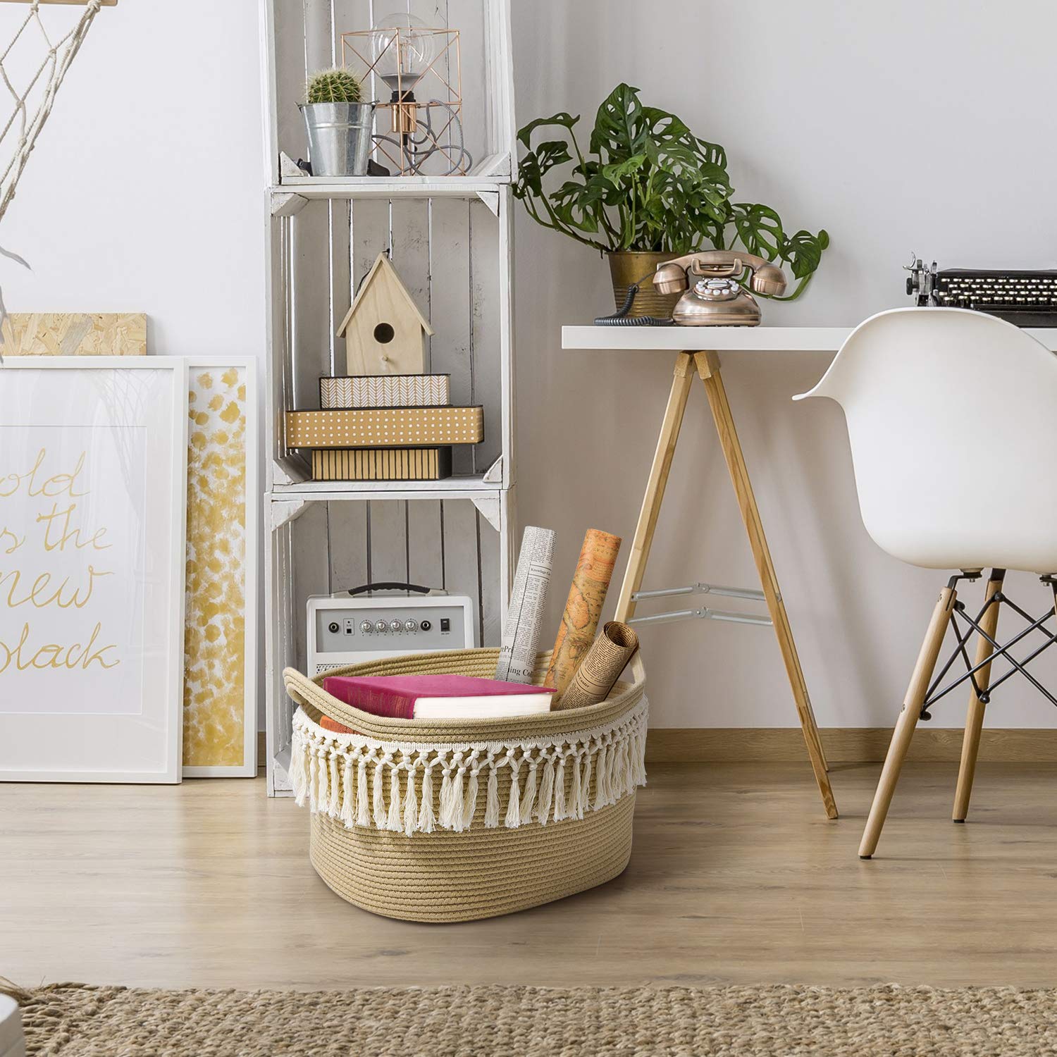 - High-Quality Material: Our woven rope basket is made from 100% khaki cotton, skin-friendly and healthy material, it is chemicals free for safety using