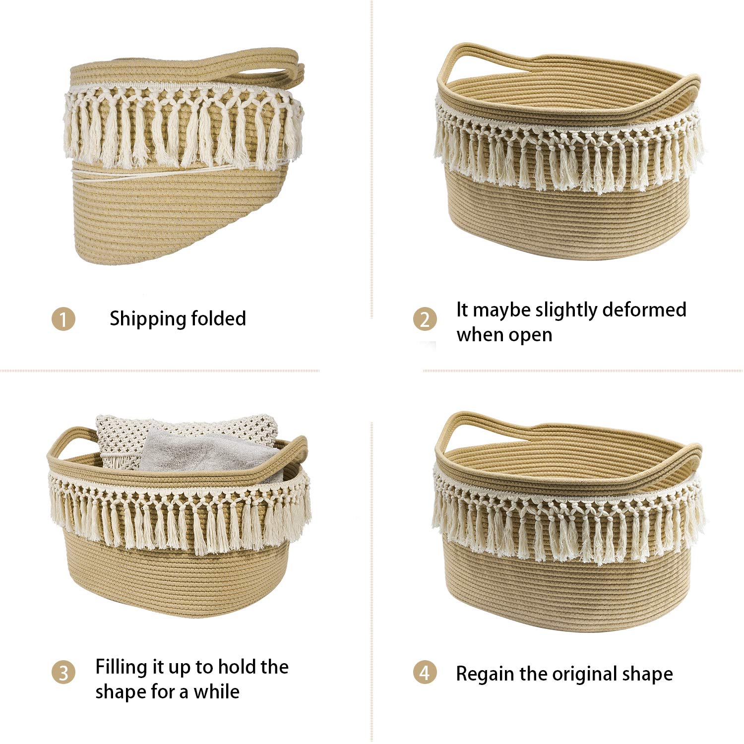 - Unique Design: Basket with fringe design, especially suitable for bohemian and farmhouse decoration. Unique eastern design is not only cute but also more convenient to move