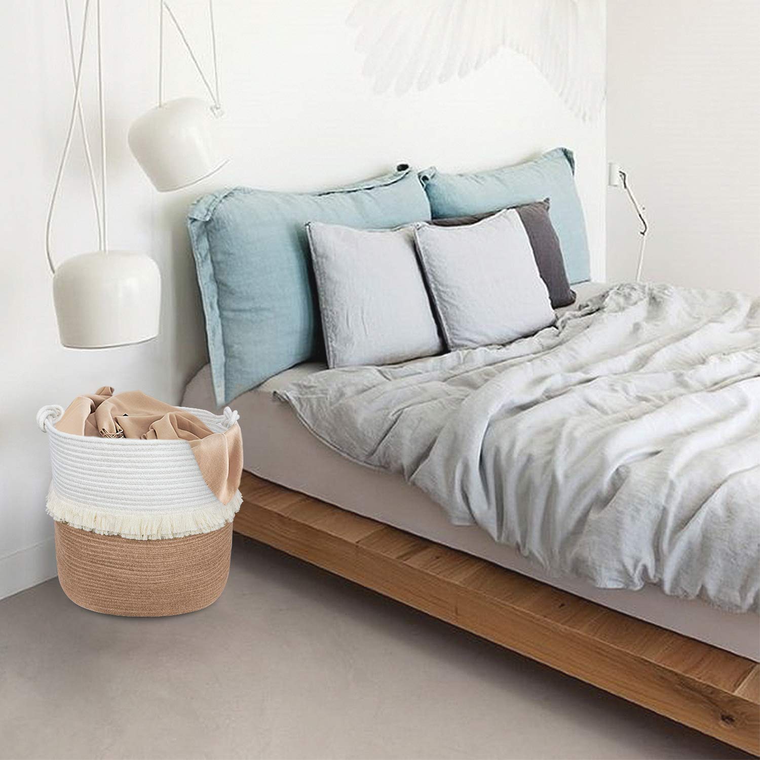 - HIGH QUALITY: Our farmhouse basket is made from organic cotton rope and firm jute rope, jute is known for its firmness, its cost is more expensive than cotton rope, has good resilience, safe and healthy; this elegant, stylish material is attractive and durable