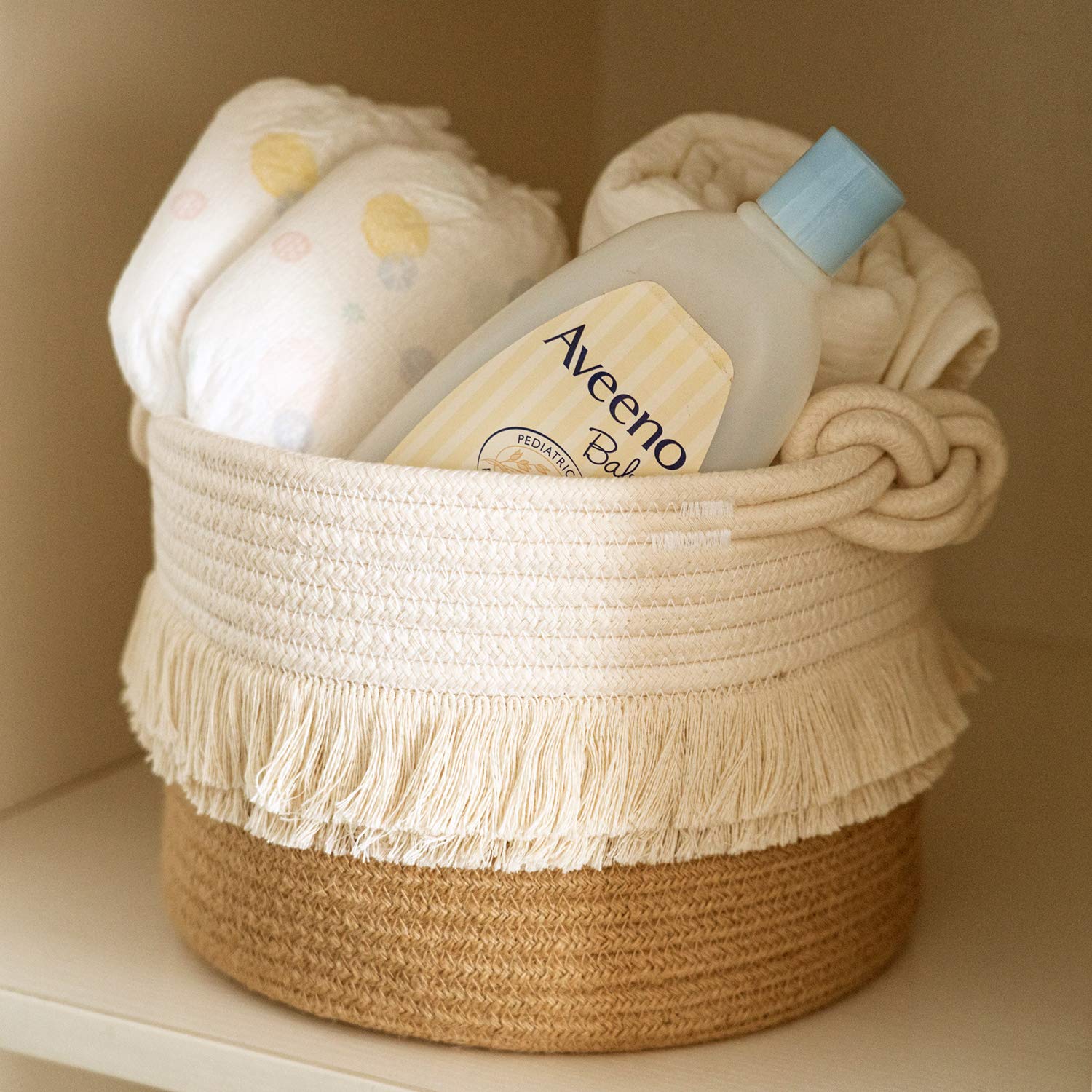 Small Woven Storage Baskets Cotton and Jute Rope Decorative Hamper
