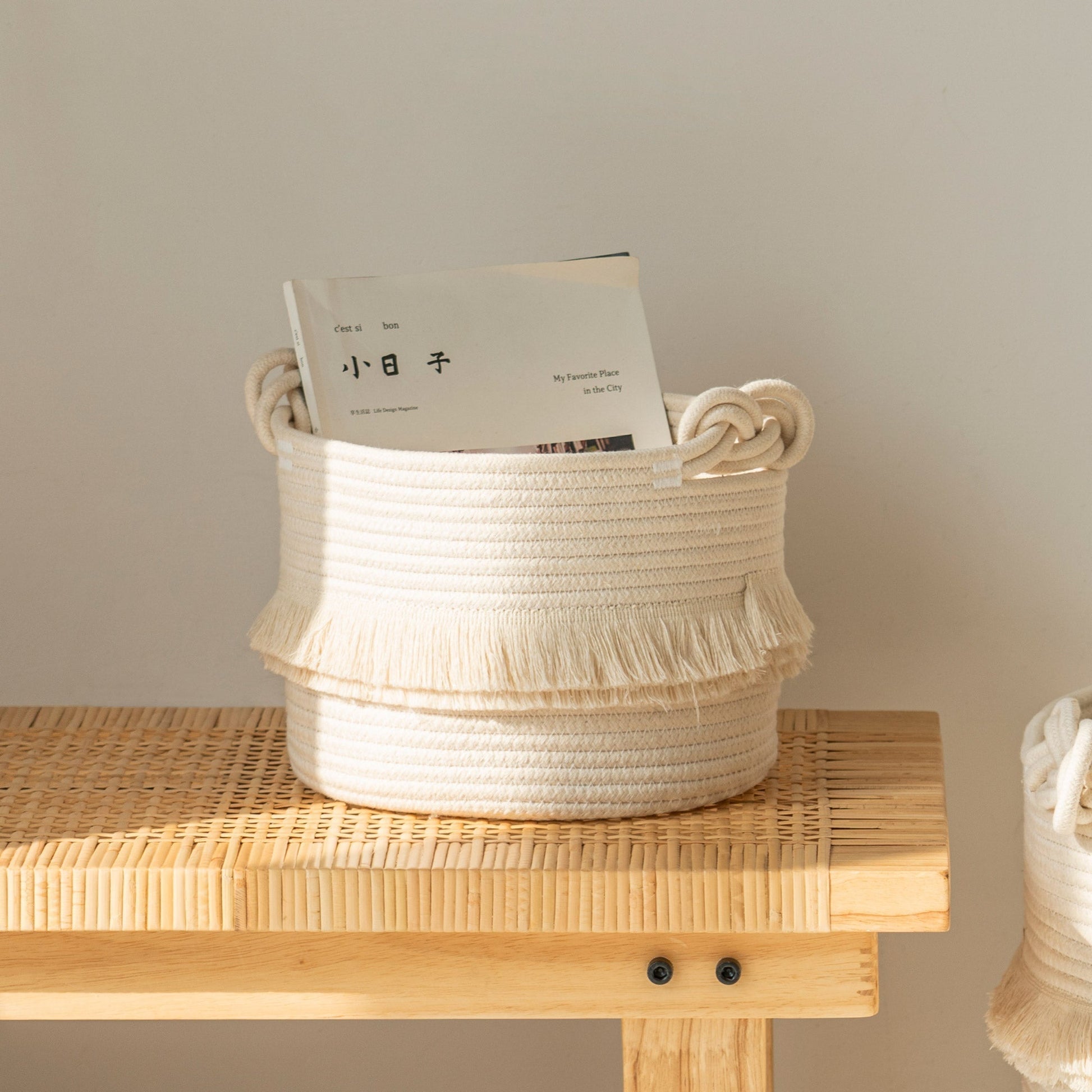 - HIGH QUALITY: Our storage basket is made from strong cotton woven rope; organic cotton rope, no chemicals, has good resilience, safe and healthy; this elegant, stylish white material is attractive and durable