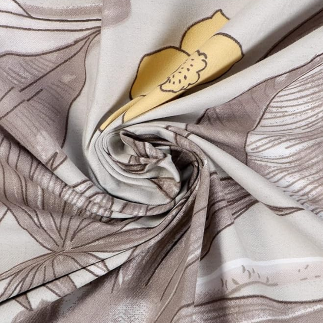 Taupe Grey Leaves King Size Bedsheets with 2 Large Pillow Covers