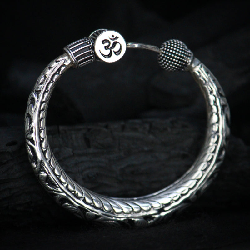 Embrace the divine energy of Lord Shiva with the exquisite Trishul Om Silver Bangle. Crafted with precision and reverence, this stunning bangle features the powerful Trishul (trident) and the sacred Om symbol, bringing together two of the most potent symbols in Hindu spirituality.
